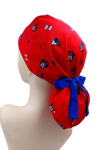 Mickey & Minnie In Red Ponytail Scrub Cap Doctor Theatre Nurse Hospital Paediatric Vet Surgical