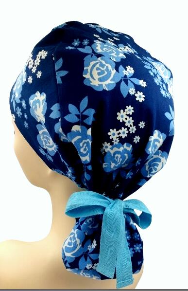 Floral Blue Ponytail Scrub Cap Doctor Theatre Nurse Hospital Paediatric Vet Surgical