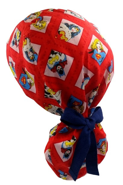 Supergirl Batgirl WonderWoman Patchwork Ponytail Scrub Cap Doctor Theatre Nurse Hospital Paediatric Vet Surgical