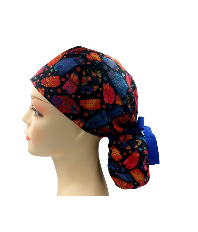 Laurel Burch Bright Feline Cats Ponytail Scrub Cap Doctor Theatre Nurse Hospital Paediatric Vet Surgical