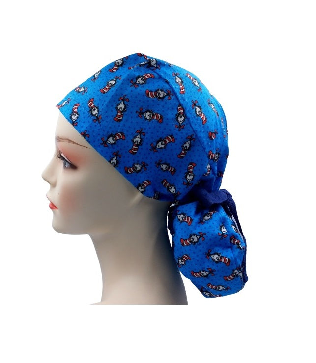 Dr. Seuss The Cat in the Hat Blue Ponytail Scrub Cap Doctor Theatre Nurse Hospital Paediatric Vet Surgical