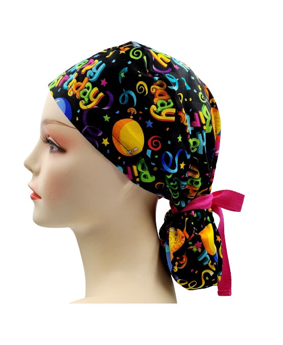 Happy Birthday Ponytail Scrub Cap Doctor Theatre Nurse Hospital Paediatric Vet Surgical