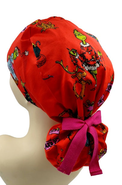 Dr Suess Grinch Christmas Red Ponytail Scrub Cap Doctor Theatre Nurse Hospital Paediatric Vet Surgical