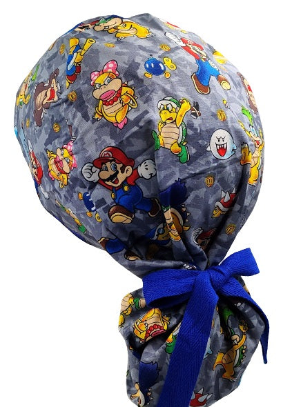 New Super Mario Brother with Friends in Grey Ponytail Scrub Cap Doctor Theatre Nurse Hospital Paediatric Vet Surgical