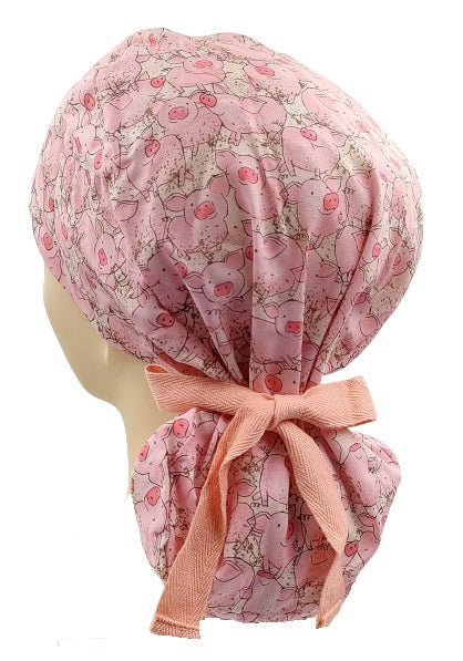 Pink Pigs Ponytail Scrub Cap Doctor Theatre Nurse Hospital Paediatric Vet Surgical